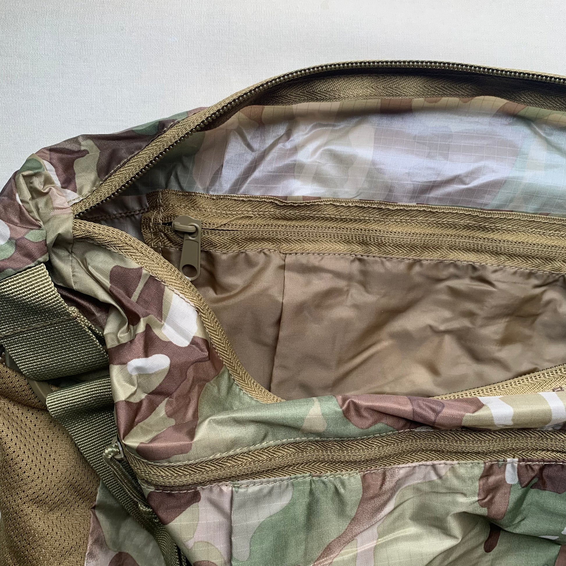 サイドにはペットボトルも入れられるメッシュポケットが、内と外の2ヶ所にはジッパーポケットが備わっており収納力も充実。