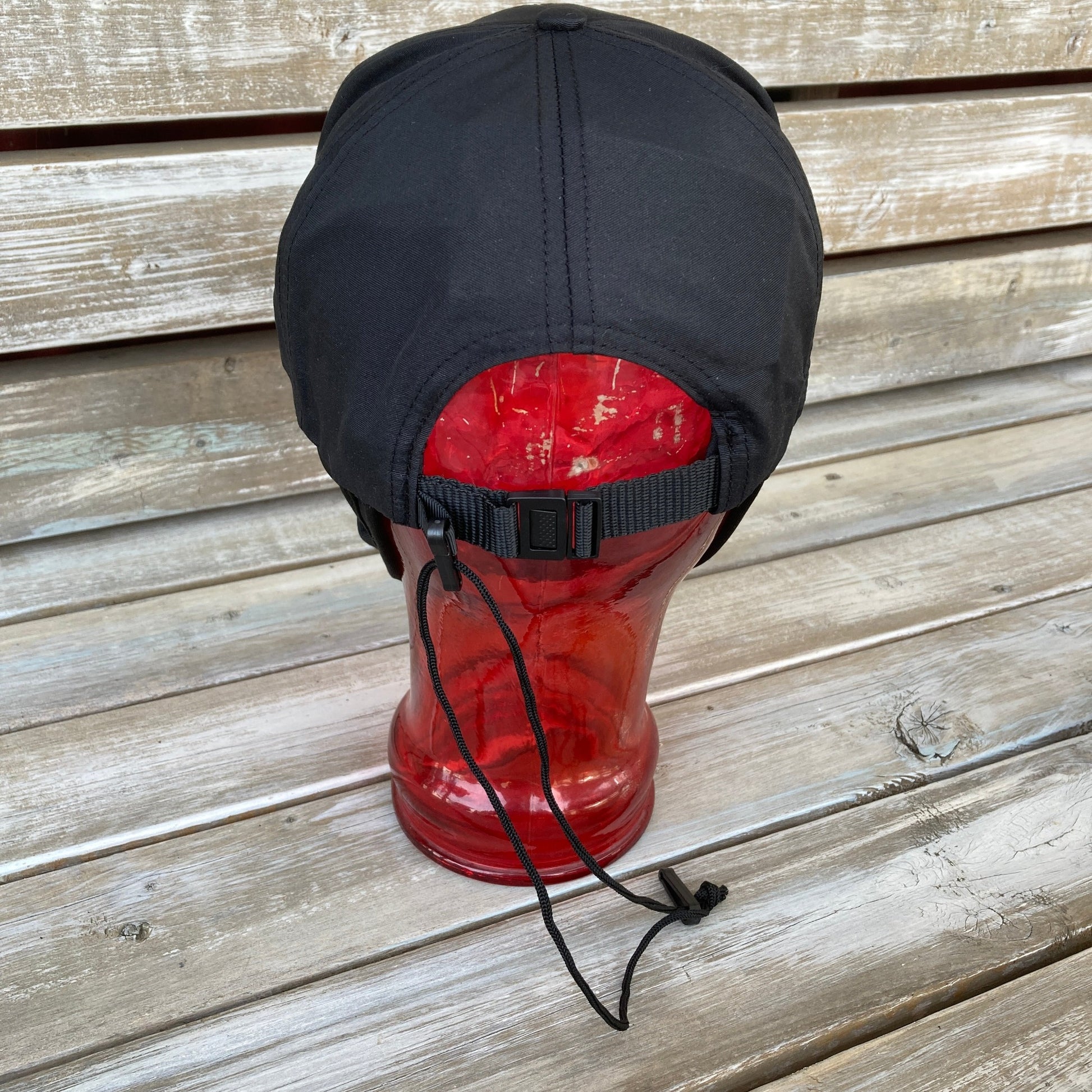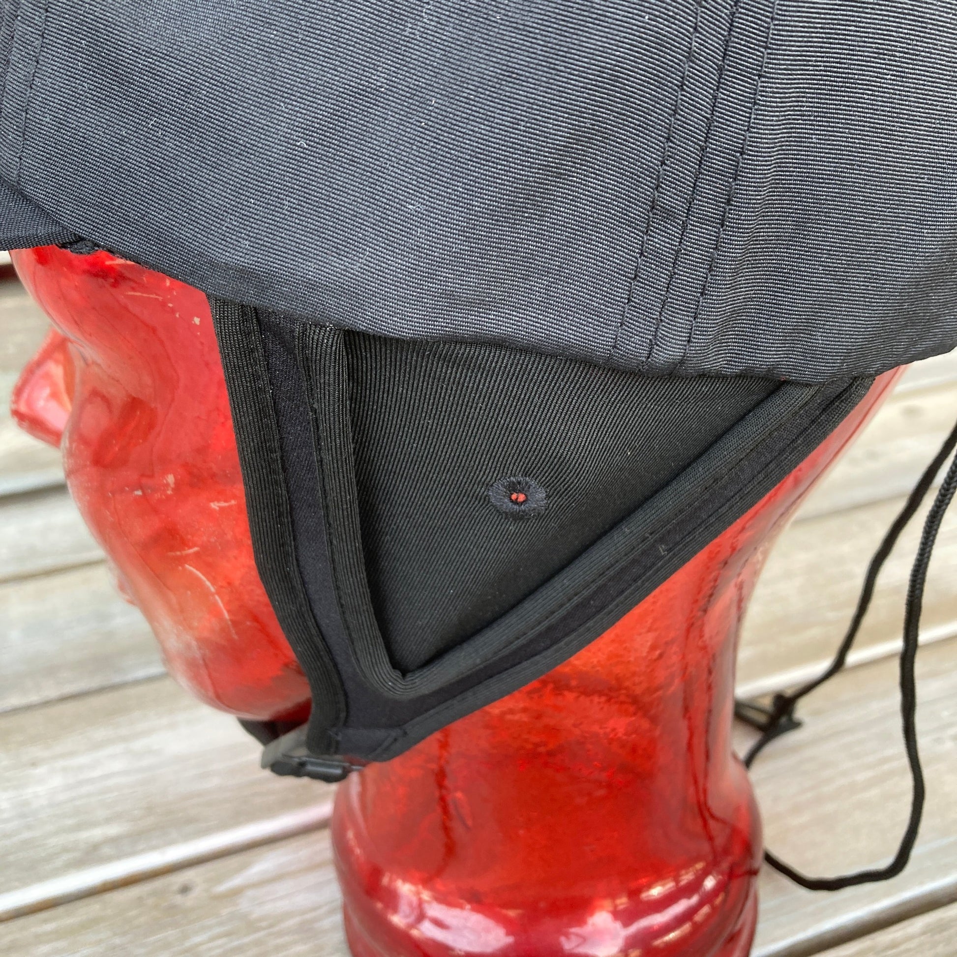 つばの固いトラッカーキャップ。耳のよこはメッシュになっていて快適です