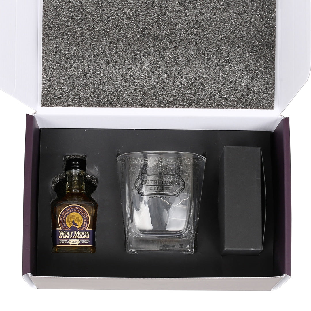 ウイスキーのミニチュアボトルとロックグラスを模した大人の遊び心たっぷりなディフューザーセット。 氷に見立てた天然石を付属のグラスに入れて、ウイスキーを注ぐように数滴オイルを垂らして香りをお愉しみください。 香りの種類によってミニチュアボトルの形状とラベルがひとつひとつ異なるコレクタブルなデザインも魅力です。 ボトルとグラスを並べて置けるコースターも付属していて、お部屋に置いた時もサマになります。 ギフトにぴったりな高級感のあるパッケージが付きます。