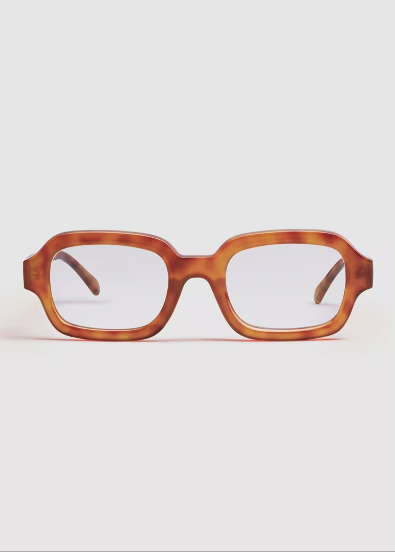specs ; clear blue light blocking lenses that transition to a 'sour grape' tint in the sun.